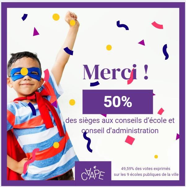 Lors des élections de représentants de parents d’élèves d’octobre 2025, la CAAPE obtient 50% des sièges aux conseils d'école et d'administration des 9 établissements scolaires publics, grâce à :