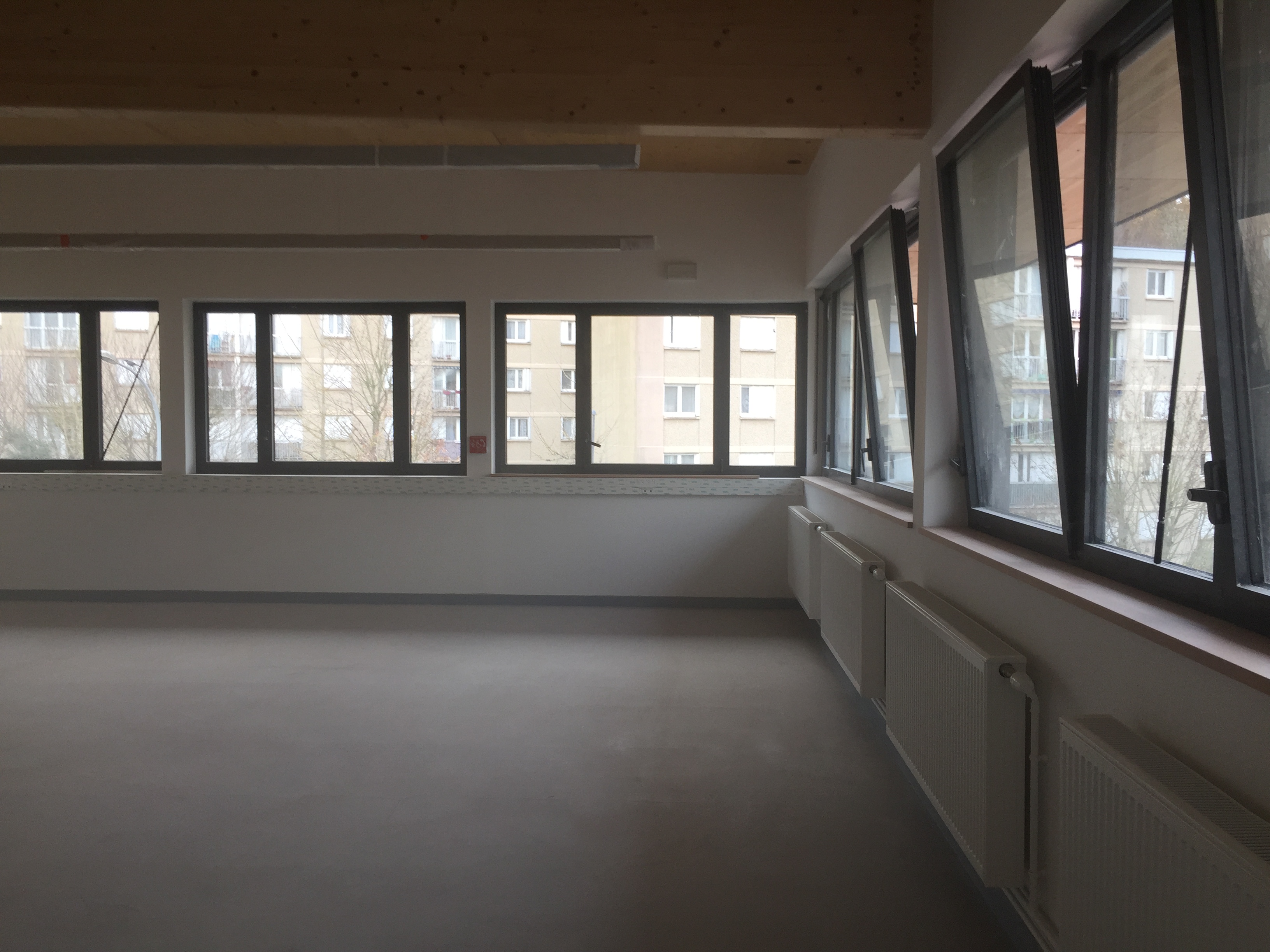 Les salles sont bien équipées en prises, en lavabo, en réseau internet, en chauffage (radiateurs), en panneaux d’isolation phonique et avec des stores extérieurs pour la protection solaire. Un sol en linoléum doit encore être posé. Les salles sont modulables pour qu’une fois les travaux terminés, l’utilisation des salles pour les Iris soit souple (classes, périscolaire, autres).