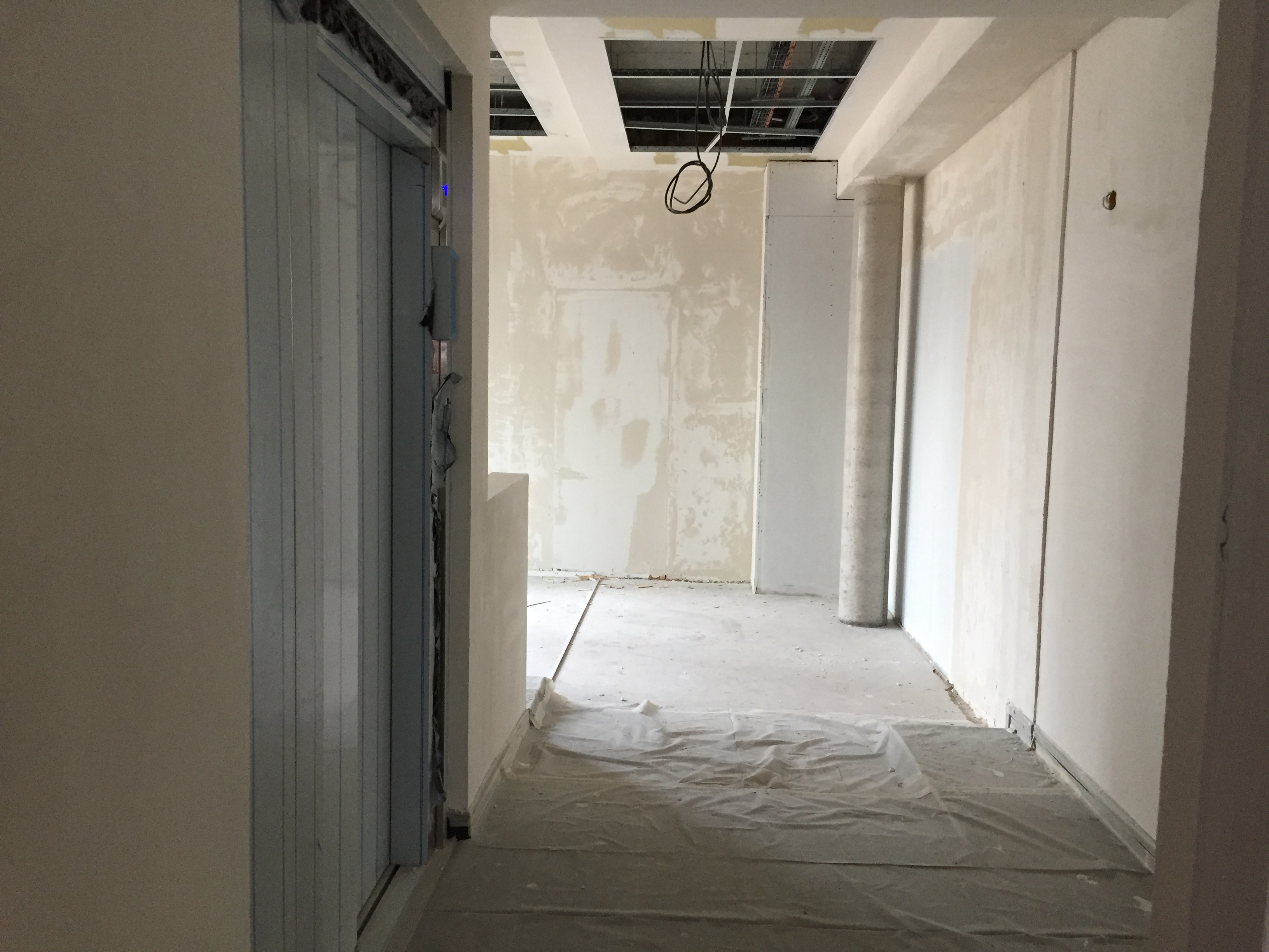 Un ascenseur commun (4) aux deux écoles a été installé dans l’entrée et dessert chaque étage des deux écoles. Les derniers étages ne sont pas au même niveau mais l’ascenseur a une double-porte pour s’ouvrir sur les étages décalés.